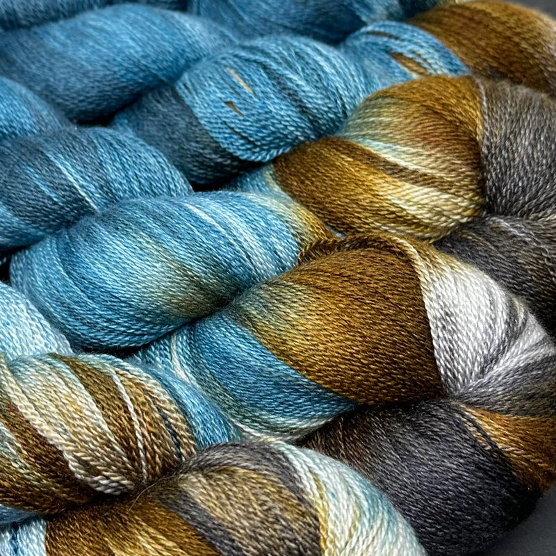 Luna Lace, a sumptuous 50/50 blend of Merino and Mulberry Silk. With a lovely hand and excellent, you can not go wrong with this delectable heavy lace yarn.